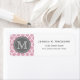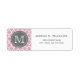 Cooles niedliches geometrisches, trendy lila lila, graues und weißes marokkanisches Gitterquellenmuster mit grauem Typenschild für Ihren individuellen Monogramm-Anfangsbuchstaben. Schick farbenfrohe mit Monogramm, moderne Adressetiketten.