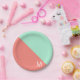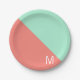 Mit Monogramm Minze- und Korallenfarbblock Pappteller