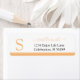 Einfache moderne Rücksendeadressen-Aufkleber für den Anfangsbrief Ihrer Familie für Ihre Korrespondenzen. Das elegante mädchenhafte Drehbuch passt zum Liniendesign im Farbpfirsich, gleicht es aber im Stil aus und schafft so eine lustige Drehung zum minimalistischen Look.