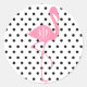 Mit Monogramm rosa Flamingo + Schwarzer Polka Dot Runder Aufkleber