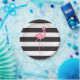 Ein Geschenk, das eine Illustration einer rosa Flamingo-Silhouette kennzeichnet. Personifizieren Sie mit Ihrem Monogramm innerhalb des Kreises auf dem Körper des Flamingos. Hintergrund ist Schwarzweiss-Streifen.