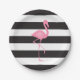 Mit Monogramm rosa Flamingo + Schwarzes + Weiße Pappteller