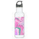 Marmorflüssigkeiten in rosa, lila und minzgrünen Wasserflaschen. Fügen Sie Initialen in den personalize-Bereich hinzu.