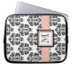 Dieser hübsche und elegante mit Monogramm rosa und schwarze Damastlaptop, Tablette und/oder Elektronikhülse, Kasten, Abdeckung und Tasche können mit Ihrem Monogramm oder Initiale auf dem Kontraststich-Bandentwurf personalisiert sein. Wählen Sie von 3 verschiedenen Größen. Entworfen durch Chrissy H. Studios, LLC. Alle Rechte vorbehalten.