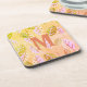 Mit Monogramm Rosa und Abstrakte Blätter Untersetz Getränkeuntersetzer