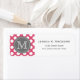 Cooles niedliches geometrisches, trendige Pink- und Weißpolka-Muster mit grauem Typenschild für Ihren individuellen Monogramm-Anfangsbuchstaben. Schick farbenfrohe mit Monogramm, moderne Adressetiketten.
