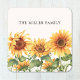 Die Mit Monogramm rustikale gelbe Sonnenblumengarten Papier Untersetzer. Mit Aquarellbild des Gelbblütenfeldes und bearbeitbaren Texten, die angepasst werden können. Geeignet für naturgetreue Veranstaltungen.