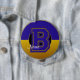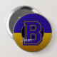 Mit Monogramm Knopf für Schulfarben, Blau und Gold, Letter B- Ein großer, rund 4 Zoll Button gedeckter Knopf mit einem gesteppten Monogramm-Buchstaben in der Mitte. Der Hintergrund dieses Knopfes wird in zwei Schulfarben (blau und gold) mit einem mittleren Loch-Ausschnitt erstellt, der einen schwarzen Hintergrund darunter zeigt. Der runde Rahmen wird in der Mitte und an den Außenkanten mit einem schönen goldenen Rand ausgetrimmt. In der Mitte befindet sich ein großer Alphabet Buchstaben, der in Goldnähe geschnitten ist. Es gibt bereits einen Textbereich, in dem Sie nach Belieben personalisieren können. Sie können einen Vornamen, Nachnamen, einen Schulnamen oder alles andere schreiben, was Ihnen gefällt. Sie können auch den Textbereich löschen, wenn Sie es vorziehen. Personalisieren Sie diese Schaltfläche Schulfarben auf Anzug. Diese Monografie-Schaltfläche des Kollegiums ist in verschiedenen Schulfarben erhältlich.