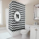 Mit Monogramm, Schwarz-weiß gestreiftes Zickzack M Duschvorhang