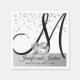 Herrliche elegante personalisierte mit Monogramm Silber 25. Hochzeitstag Einwegservietten für Ihren Empfang. Nicht billig aussehen, aber teuer und elegant. Fügen Sie Monografie, Braut und Bräutigam Namen und Datum hinzu. Silber-Folie mit weißem Hintergrund und Schriftart und Größe mit schwarzen Buchstaben. Cocktail-Servietten stehen ebenfalls zur Verfügung. In der Hochzeitskollektion NAPKINS & TELLERS gefunden