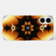 Mit Monogramm symmetrisches Schwarz-Orange-Fraktal iPhone 16 Hülle