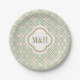 Entwirft elegante, stilvolle und schöne französische marokkanische Fliese inspirierter PapierTeller mit einem wiederholenden tadellosen Grün und einem Goldgeometrischen quatrefoil Muster. Unser kundenspezifischer PapierTeller des upscale und luxe Blickes kann mit den Initialen der Braut und des Bräutigams oder des Feierns mit Monogramm sein Paare und ist für einen formalen Marokkaner, eine Inder-inspirierte, arabische Nacht- oder Aladdinthemed Hochzeit, eine Paardusche, ein Brautparty, ein Jahrestags-Party oder eine Verlobungsfeier perfekt. Entwurf © Chrissy H. Studios, LLC. Alle Rechte vorbehalten