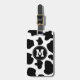 Viehdruck des Kuhstellenmuster-Gepäckanhängers | lustiger mit Monogrammbuchstaben. Geburtstaggeschenkidee für Kuhliebhaber, -cowboys und -Cowgirls. Personalizable Rindlederpelz mit Ihrem Namen, Monogramm oder Zitat. Blochy Schwarzweiss-Kuhfell-Hautentwurf. Westernreise-Themadekoration.