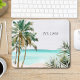 Mit Monogramm tropische Palmen Blätter Blue Beach Mousepad