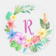 Mit Monogramm tropischer Blumenkranz Runder Aufkleber