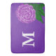 Hübsches weißes Monogramm vor lila Hintergrund. Violette Blüte mit weißen Farbtönen und grünen Blätter Aquarell. Original Artwork Design von TamiraZDesign.