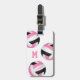 Dieser Beuteltaschen-Anhänger für Volleyball ist einfach mit drei zufällig angeordneten Volleybällen mit rosa, schwarz und weiß - personalisieren Sie den Spielernamen und das Monogramm auf der Vorderseite, Adressdaten auf der Rückseite - von katz_d_zynes