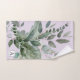 Das Mit Monogramm Greenery Bath Handtuch Set. Mit Aquarellbildern von tropischen Blätter und einem Monogramm, das für Naturliebhaber individuell gestaltet werden kann.