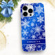 Erstellen Sie ein personalisiertes Weihnachtshandy mit einem königsblauen und weißen Schneeflockenmuster. Die Vorlage macht es einfach, Ihren Namen einzugeben.