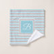 Modernes und trendiges Set mit Zickzack Mustern in Weiß, Grau, Blau und individuell anpassbarem Monogramm in elegantem Schriftart mit Handschrift (nur auf Waschlappen und Handtuch).