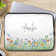 Dieser florale Laptop-Ärmel ist mit zarten Aquarellfarben-Blume, Blattwerk und Schmetterlingen in Pastellfarben dekoriert. Einfach anpassbar mit Ihrem Namen und Initial. Original Wasserfarbe © Michele Davies.
