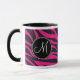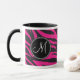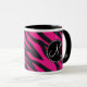 Benutzerdefinierte Mit Monogramm Initial Hot Pink Black Zebra Print. Diese Tasse hat zwei Monogramm-Buchstaben, eine auf jeder Seite. Sie können entweder für beide das gleiche Monogramm eingeben, oder Sie können verschiedene Monogramme haben, eines für Sie und eines für Ihren Partner.