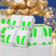 Maßgeschneiderter w/Initial Letter, neon-grün weißes Geschenkpapier Passen Sie alle Geschenke mit ihren individuellen Buchstaben, Initialen, Alphabet Frohe Weihnachten, Happy Holidays Geschenkpapier an