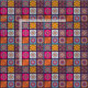 Mit Ziegeln gedecktes Blumenmuster der geistigen MehrfarbenMandala groß für Hausdekoration. Fliesen mit Minimandala-Blumeninnere, das Sie die Größe neu bestimmen können, umbenennen und personifizieren.