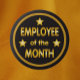 Mitarbeiter des Monats in goldener Metallschrift mit Sternen für Ihr Büro oder Ihr Unternehmen, um Mitarbeiter zu ehren oder zu belohnen.