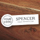 Weiße Namensschilder, die mit Ihrem eigenen Firmenlogo versehen sind. Einstellungsfähiger Name in einem eleganten Serif-Schriftart und Name/Firma unten. Sie können die Schriftart- und Hintergrundfarbe mit dem Designwerkzeug ändern.