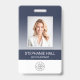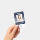 Geben Sie Ihrer Marke ein elegantes, modernes Design mit diesem individuellen Abzeichen. Es zeichnet sich durch eine raffinierte vertikale Anordnung mit einem schönen Verlauf aus, der von einem tiefen, reichen Blau in ein knuspriges Weiß verblasst und einen stilvollen Hintergrund schafft. Dieses elegante Design bildet den Rahmen für das Foto und die wichtigsten Informationen eines Mitarbeiters und sorgt so für ein berufliches und einheitliches Erscheinungsbild.