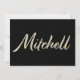 Eine personalisierte schöne und edle Karte / Grußkarte / Geschenkkarte / Geburtstagskarte im Handwriting liquid white gold Design für Mitchell.