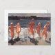 Diese Postkarte enthält ein Gemälde aus dem Jahr 1935 mit dem Titel "Lunch Break" von Aleksander Deineka. Das Bild zeigt eine Gruppe ansehnlicher, sportlicher junger blonder Männer, die nach einem Schwimmen im Wasser am Strand an Land rennen.