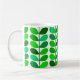 Kaffee-Tasse in einem modernen dänischen inspirierten Muster der Mitte des Jahrhunderts Textildes stylized Blätter - Schatten des Grüns, von hellem Limonem zum dunklen Smaragd, auf einem weißen Hintergrund