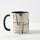 Diese Mitte- des Jahrhundertsmoderne abstrakte Gewebe-Tasse kennzeichnet eine Replik eines Vintagen Fünfzigerjahre Gewebes. Der Hintergrund ist ecru mit Schwarz- und Goldlinien. Das Gewebe kennzeichnet auch die grauen und rosa Kunstformen. Es ist eine Explosion von der Vergangenheit! Dieses ist der perfekte Entwurf für jedermann, das Liebeeinzelteile mit einem retro Gefühl.