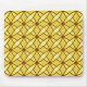 Mitte des Jahrhunderts modernes ` Atom" geometrisches Muster der konzentrischen elliptischen Ringe - dunkles Braun, weich Gelb und Creme auf einem Senfgelb/einem Goldhintergrund