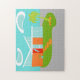Dieses Mitte- des Jahrhundertsmoderne Cartoon-Haus-Puzzlespiel hat Sie zu wollen, um die WILLKOMMENE Matte heraus zu setzen und zu Hause sich zu machen! Die Sechzigerjahre, unbedeutende KunstAusrüstungsbeschreibungen formten ein glatter, orange Stein und ein Aquaglashaus auf einem üppigen, grün, Bumerang Rasen. Der Rasen bildet eine Oase mitten in seinen grauen, konkreten Umgebungen. Eine grüne Palme beeinflußt in die Brise. Vier, orange Sprungbrett führen die Weise zu dem Retro, rot, Haustür mit drei, Scheiben des rechteckigen, Glasfensters. Auf der linken Seite der Tür hält ein Türkis Flowerpot eine tropische, grüne Pflanze. Das Haus hat ein Neigen, v-förmiges weißes Dach, das auf zwei zeigt, Weiß, geformte Wolken der weißen Bohne. Der Himmel ist ein positiv ruhiger Schatten von Aqua. Niemand will, um Steine von diesem modernen, Glashausentwurf zu werfen! Kaufen Sie dieses Produkt des kitschy, Raumalters und seien Sie die coolste Katze auf Ihrem Block!