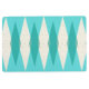 Diese Mid Century Modern Raute Floor Mat besticht durch einen lebendigen, türkisfarbenen Hintergrund und ein Muster von Mod, durchsichtigen aquamarinen Diamanten, die über größere, Vintage Cremetamortien mit goldfarbenen, weltraumzeitalterlichen Fesseln liegen. Diese minimalistisch , dekonstruierte Raute ist ein simplistischer Rückschlag aus dem Zeitalter der Atomenergie größer als das Leben, das die verzierende Landschaft der 1950er und 1960er Jahre dominierte. Dieses kitschige Design erinnert an alles, von den Schildern der Retro Palm Springs-Bowling-Gasse bis zu den Fernsehgeräten, die Sie bei Ihrer Großmutter benutzt haben.