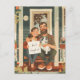 Dies ist eine schöne Postkarte, die eine Darstellung der Ehefrau und des Ehemanns und ihres Hundes mittleren Alters zeigt. Die Familie sitzt auf der Veranda ihrer Zuhause und hält ein Banner mit dem Standardtext, der aber anpassbar ist: "Vergiss uns nicht!" Dies ist eine großartige Postkarte, um den jüngeren Familienmitgliedern zu vermitteln, dass ihre Eltern sie vermisst sind.