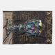 Mittelalterliches lila und aquablaues Juwel mit goldenem Rand in mittelalterlicher gotischer Burgbibliothek.