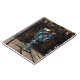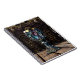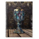 Mittelalterliches lila und aquablaues Juwel mit goldenem Rand in mittelalterlicher gotischer Burgbibliothek.