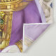Tapisserie in einem Portrait einer Ingwer-Katze, verkleidet als Adelige, mittelalterliche Katzenjungfrau, in einem lila, kunstvoll getrimmten Kleid und einem Schleier
