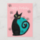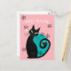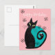 Dieses moderne Postkartendesign aus der Mitte des Jahrhunderts besticht durch eine Atomkatze mit Retro-Designelementen und einer blau-rosa Farbpalette.