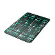 Ein Vintages Kunstdesign im Mittelalter der 50er Jahre mit einfachen geometrischen Formen breiter Rechtecke, in aquamarinen, türkisfarbenen und aquamarinischen Farbtönen mit schwarzem Hintergrund.