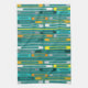 Ein mittelmodernes Vintages Kunstdesign der 50er Jahre hat einfache geometrische Formen von breiten Rechtecken. Farbenfarbenes aquamarines Grün mit Orange, Gelb und Grau.