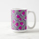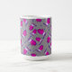 Diese festliche Tasse zeigt rosa Aquarellmilben auf einem Hintergrund von Punkten auf Grau.