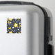 Retro-Blume und Blätter in Weiß, Grau und Ockergelb über einem dunkelblauen Hintergrund. Die Hintergrundfarbe kann geändert werden.
