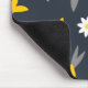 Retro-Blume und Blätter in Weiß, Grau und Ockergelb über einem dunkelblauen Hintergrund. Die Hintergrundfarbe kann geändert werden.