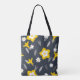Retro-Blume und Blätter in Weiß, Grau und Ockergelb über einem dunkelblauen Hintergrund. Die Hintergrundfarbe kann geändert werden.