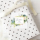 Schöne Gartenfloralen in blauen Tönen mit blütenrosa Akzenten kombiniert mit einer goldenen Grenze für einen schönen eleganten Look. Ein serifenloser Schriftart wurde ausgewählt, um der Eleganz der Illustrationen gerecht zu werden. Karo in unserem Shop für weitere Artikel.